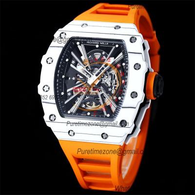 RM27-05 Flying Tourbillon Rafael Nadal White Carbon Automatic Mens Watch RMF Best Edition Black Skeleton Dial Lightweigh