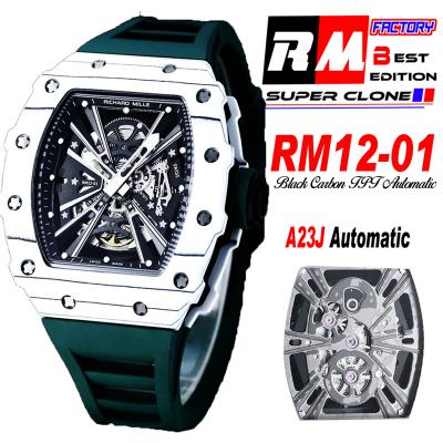 Home Richard Mille RM12-01 José Balvin Automatic Tourbillon Mens Watch RMF White Carbon Fiber Skeleton Dial Green Rubber Strap CHS AAA