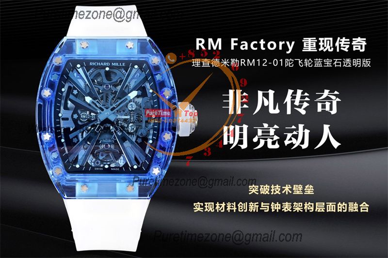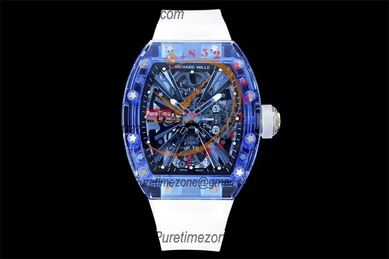 Home Richard Mille RM12-01 José Balvin Real Tourbillon Hand Winding Mens Watch RMF Best Edition Blue Transparent Composite Material Rubber