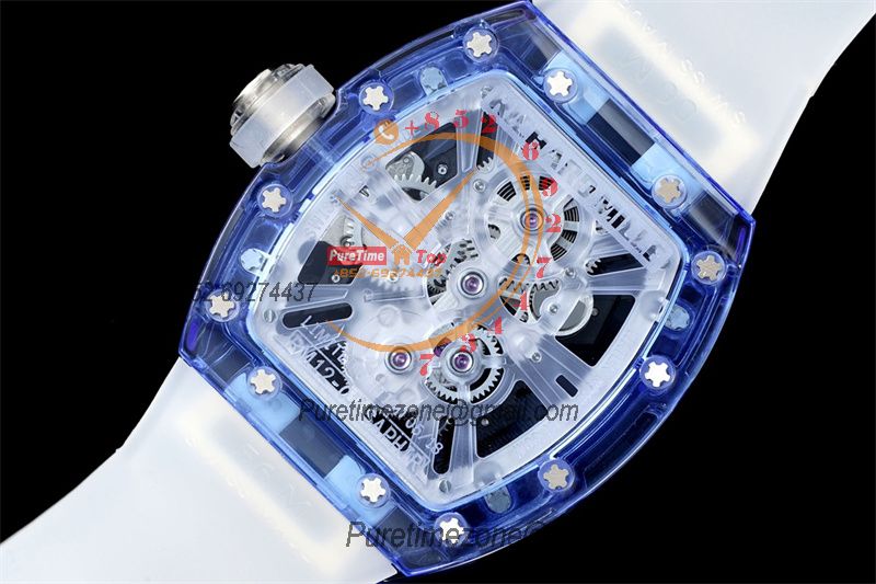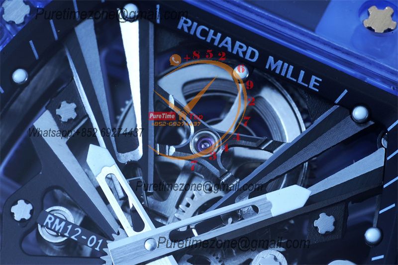 RM12-01 José Balvin Real Tourbillon Hand Winding Mens Watch RMF Best Edition Blue Transparent Composite Material Rubber