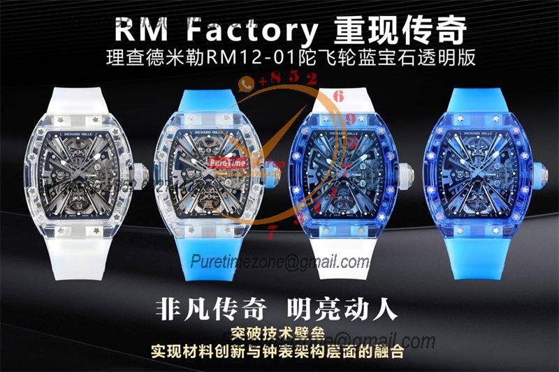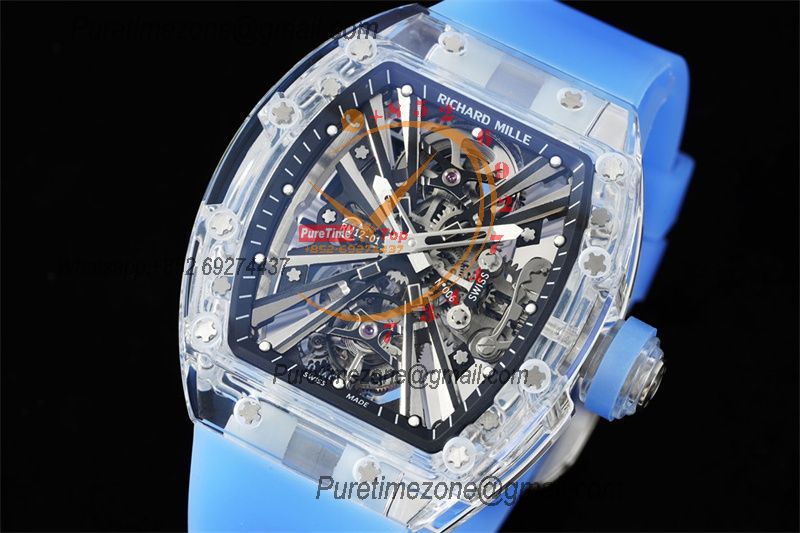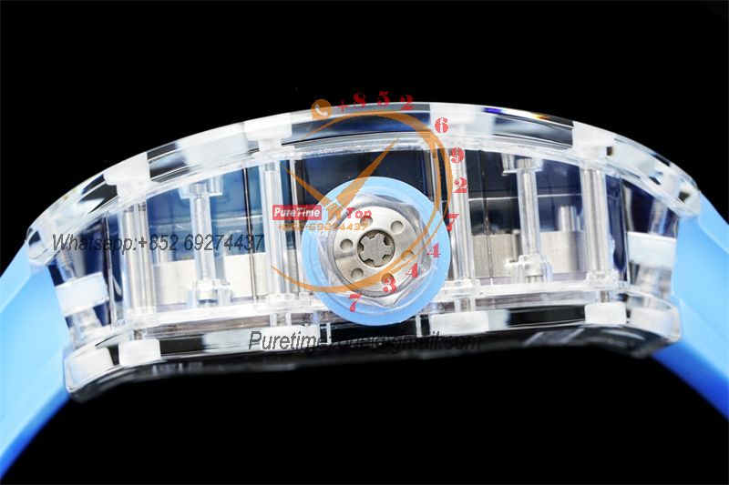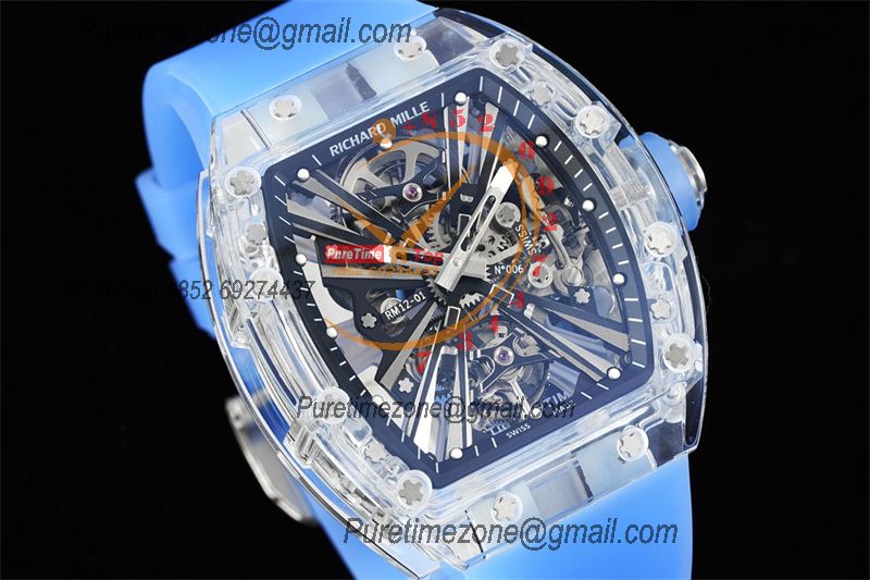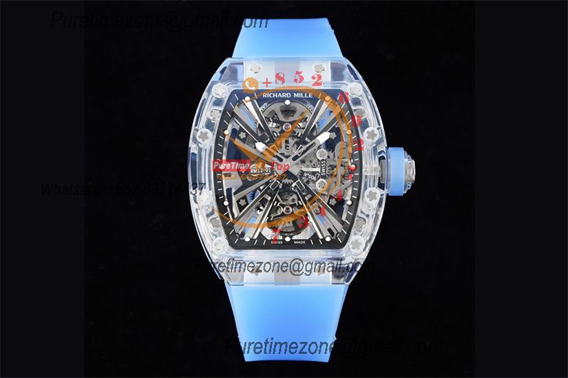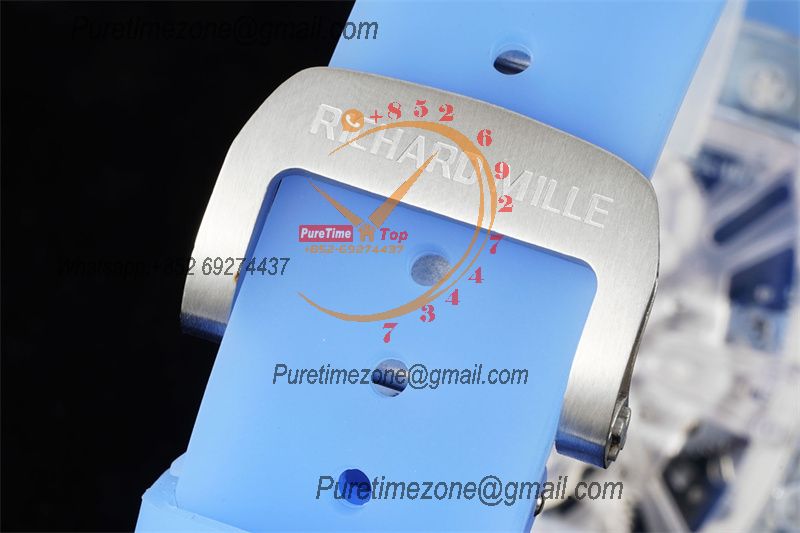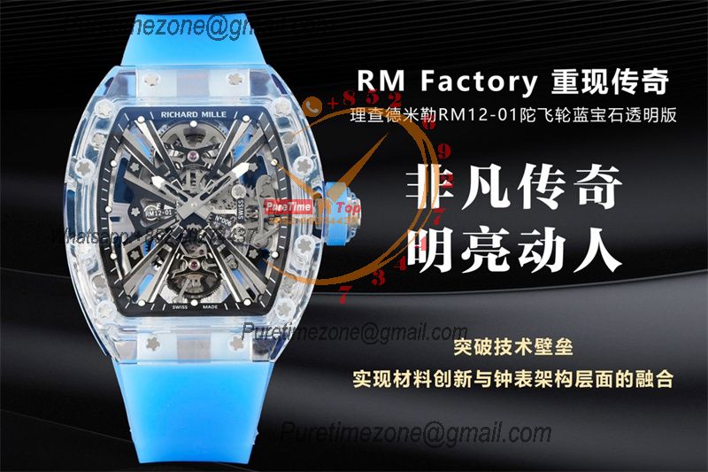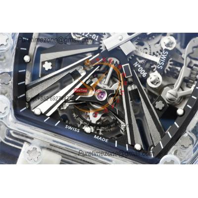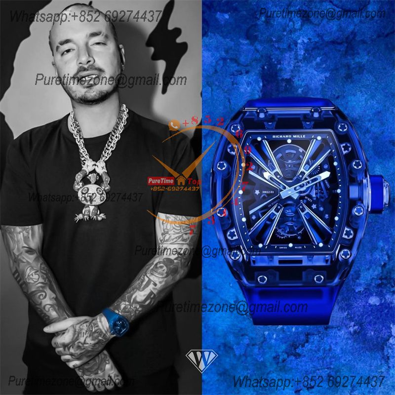 RM12-01 José Balvin Real Tourbillon Hand Winding Mens Watch RMF Best Edition Blue Transparent Composite Material Rubber