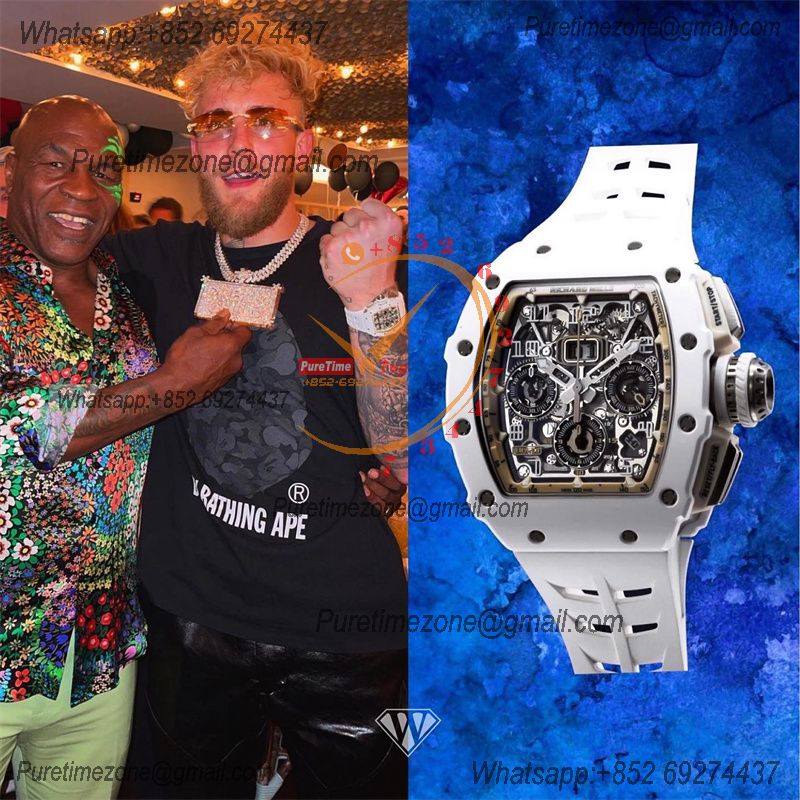 RM011 Felipe Massa White Ceramic A7750 Automatic Chronograph Mens Watch RMF Best Edition Green Rubber CHS