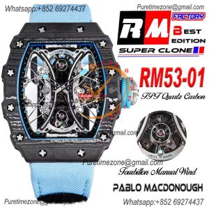 RM53-01 Pablo MacDonough Manual Wind Real Tourbillon Mens Watch RMF Best Edition Black Carbon Fiber Blue Nylon CHS $1,725.00 $1,150.00