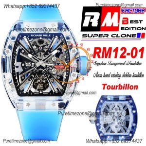 Home Richard Mille RM12-01 José Balvin Real Tourbillon Hand Winding Mens Watch RMF Best Edition Blue Transparent Composite Material Rubber