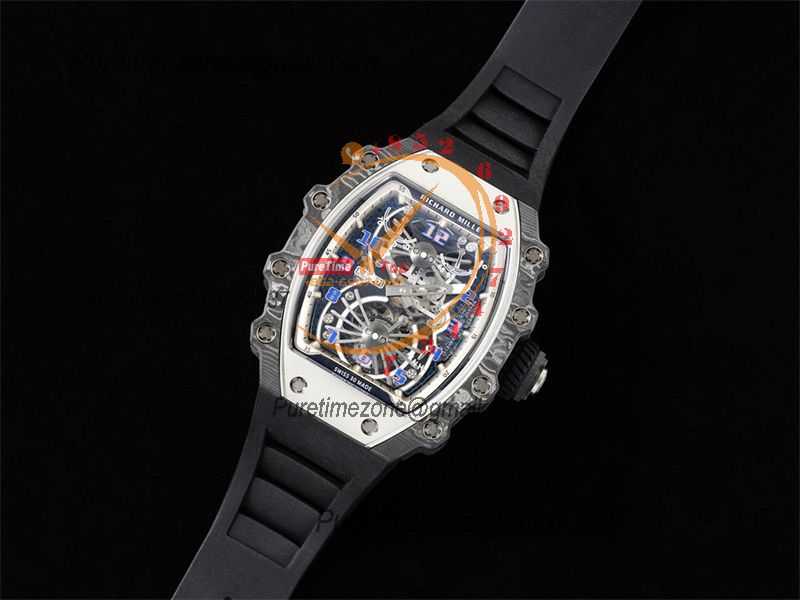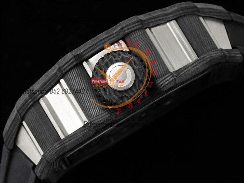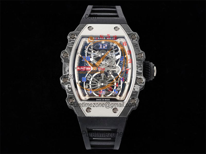 RM27-05 Flying Tourbillon Rafael Nadal White Carbon Automatic Mens Watch RMF Best Edition Black Skeleton Dial Lightweigh