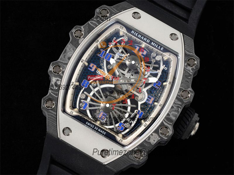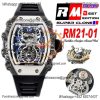 RM21-01 Real Tourbillon Aerodyne Hand Winding Mens Watch RMF Best Edition Carbon Fiber Black Rubber Strap CHS