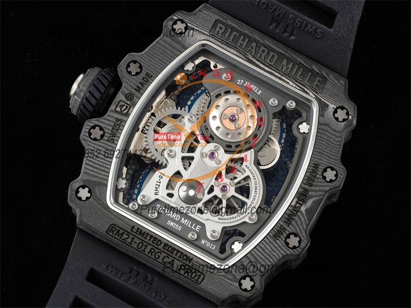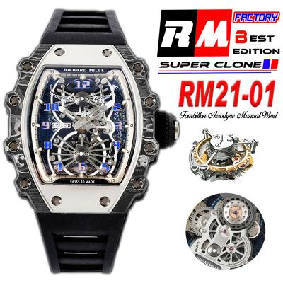 Home Richard Mille RM21-01 Real Tourbillon Aerodyne Hand Winding Mens Watch RMF Best Edition Carbon Fiber Black Rubber Strap CHS