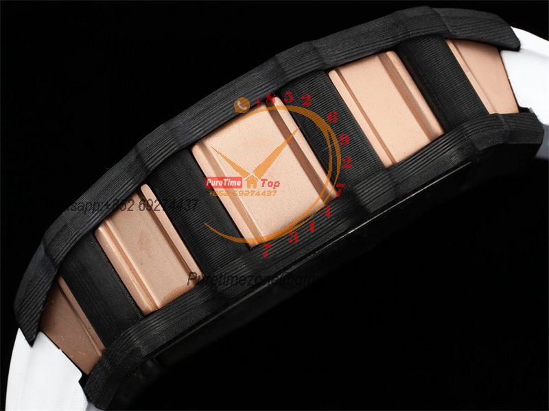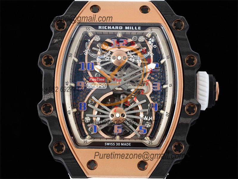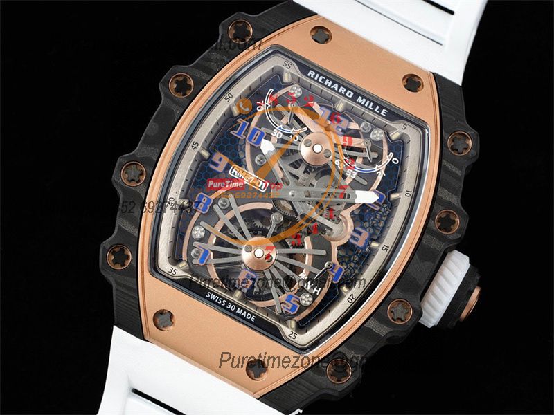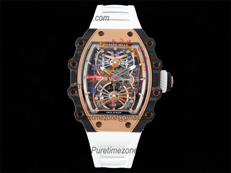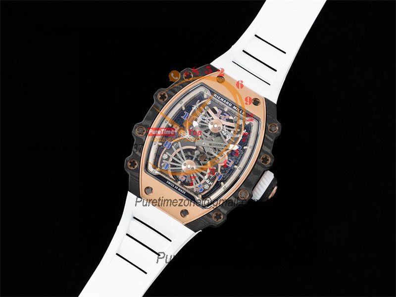 RM21-01 Real Tourbillon Aerodyne Hand Winding Mens Watch RMF Best Edition Carbon Fiber RG White Rubber Strap CHS