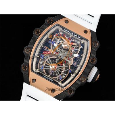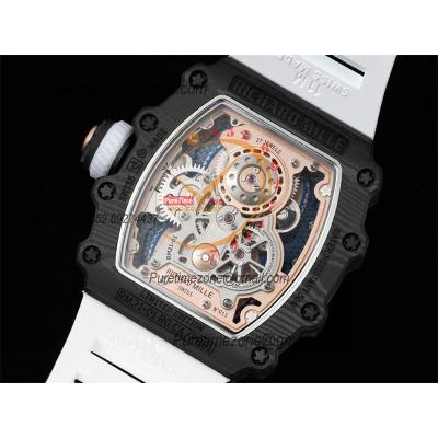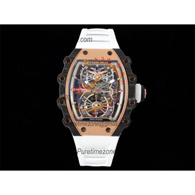 RM21-01 Real Tourbillon Aerodyne Hand Winding Mens Watch RMF Best Edition Carbon Fiber RG White Rubber Strap CHS