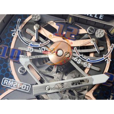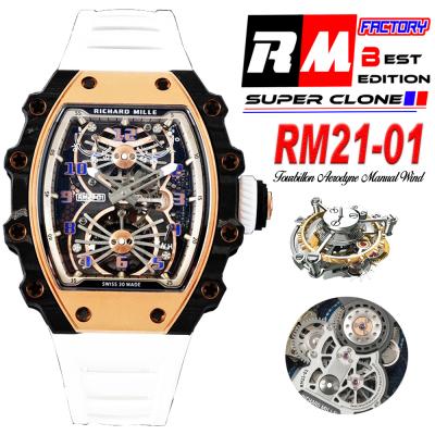 Home Richard Mille RM21-01 Real Tourbillon Aerodyne Hand Winding Mens Watch RMF Best Edition Carbon Fiber RG White Rubber Strap CHS