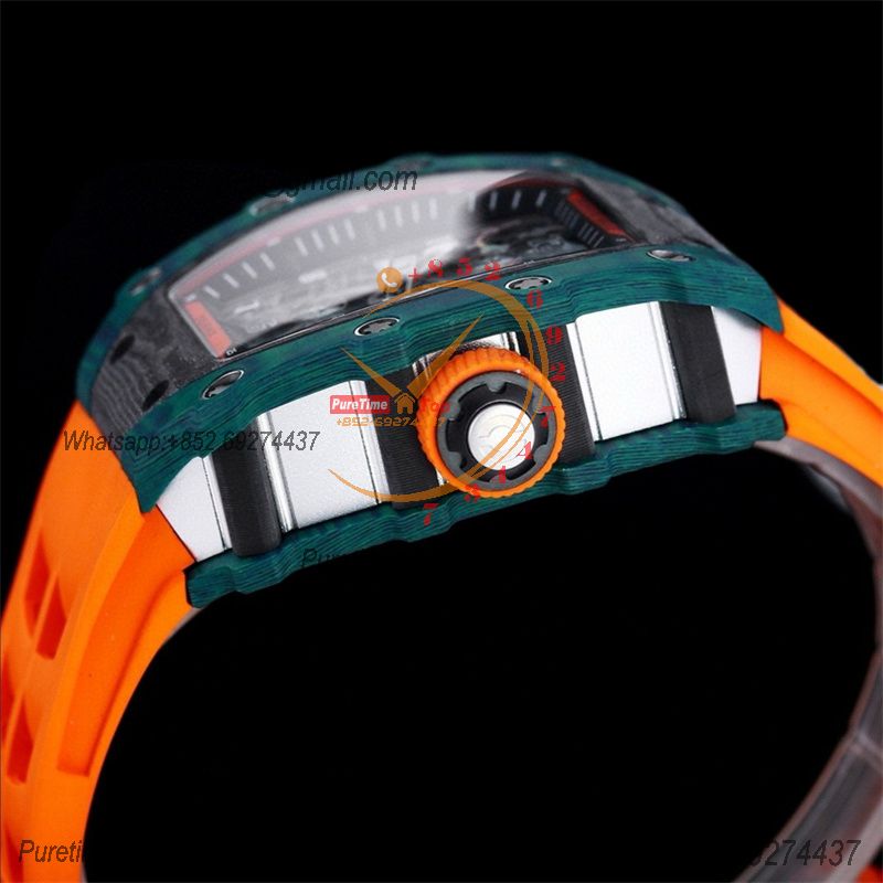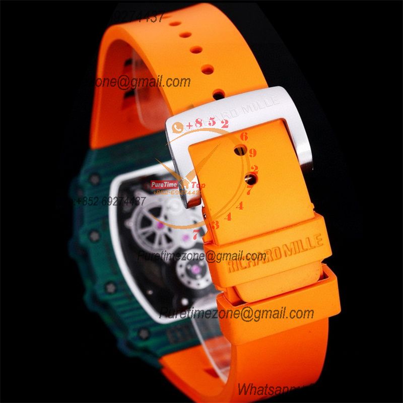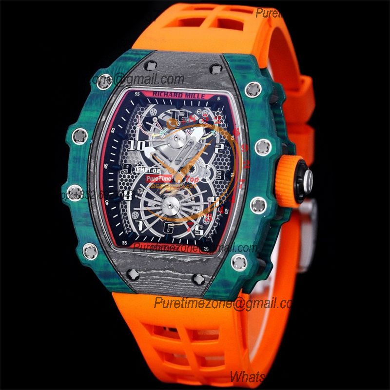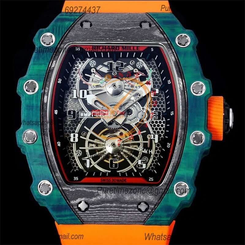 RM21-01 Tourbillon Automatic Mens Watch RMF Blue Carbon Fiber Black Dial Orange Rubber Strap CHS