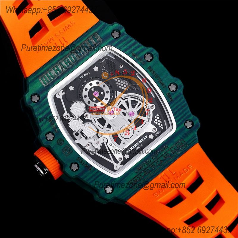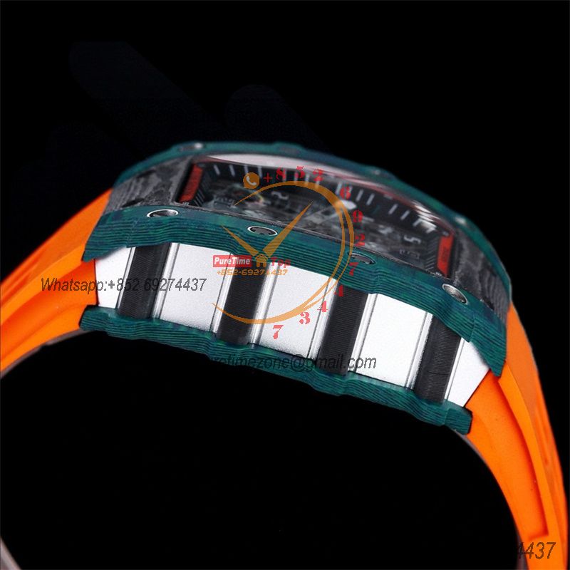 RM27-04 Rafael Nadal A23J Automatic Mens Watch RMF Best Edition Black NTPT Carbon Tennis Racket Skeleton Dial Orange Nyl