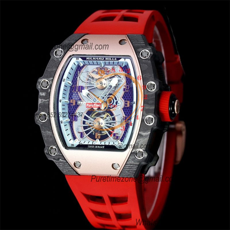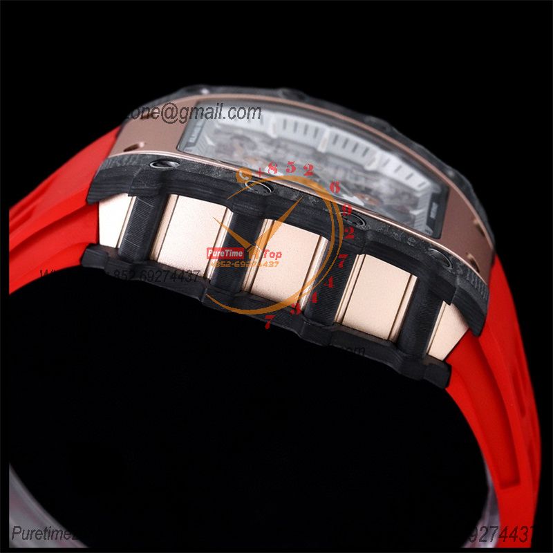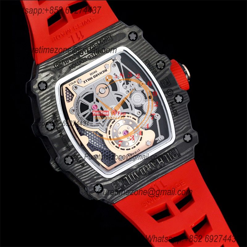 RM21-01 Tourbillon Automatic Mens Watch RMF Carbon Fiber RG Black Dial Red Rubber Strap CHS