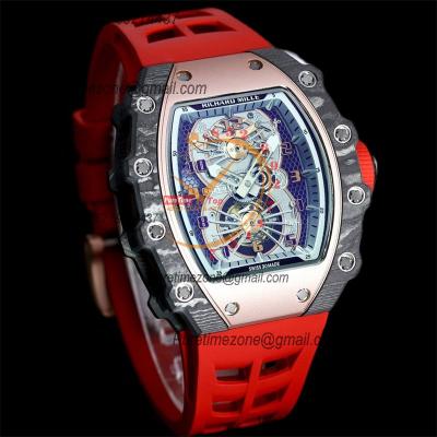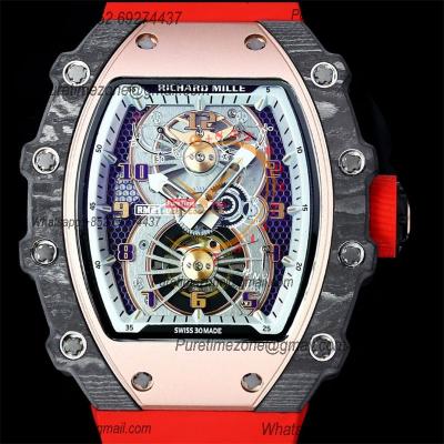 RM21-01 Tourbillon Automatic Mens Watch RMF Carbon Fiber RG Black Dial Red Rubber Strap CHS