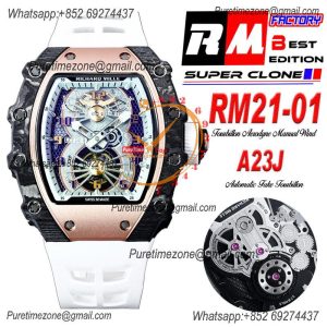 RM21-01 Tourbillon Automatic Mens Watch RMF Carbon Fiber RG Black Dial White Rubber Strap CHS $645.00 $430.00