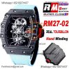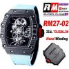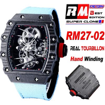 RM27-02 Real Tourbillon Hand Winding Mens Watch Best Edition RMF Black Carbon Skeleton Dial Blue Nylon CHS