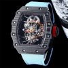 RM12-01 José Balvin Automatic Tourbillon Mens Watch RMF Black Carbon Fiber Skeleton Dial Blue Rubber Strap CHS AAA