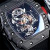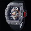 RM12-01 José Balvin Automatic Tourbillon Mens Watch RMF Carbon Fiber Skeleton Dial All Black Rubber Strap CHS AAA