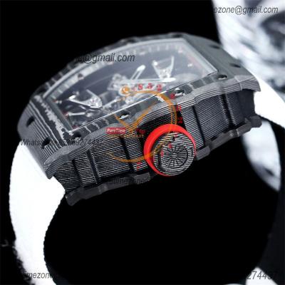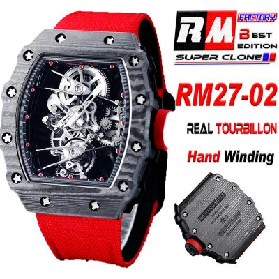 RM27-02 Real Tourbillon Hand Winding Mens Watch Best Edition RMF Black Carbon Skeleton Dial Red Nylon CHS