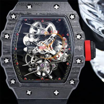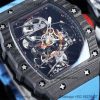 RM12-01 José Balvin Automatic Tourbillon Mens Watch RMF Carbon Fiber Skeleton Dial All Black Rubber Strap CHS AAA