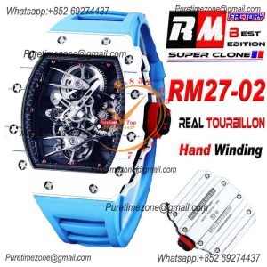 RM27-02 Real Tourbillon Hand Winding Mens Watch Best Edition RMF White Carbon Skeleton Dial Blue Rubber CHS $2,400.00 $1,600.00