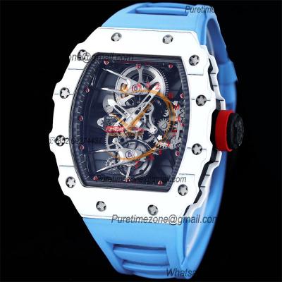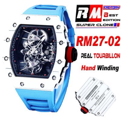 RM27-02 Real Tourbillon Hand Winding Mens Watch Best Edition RMF White Carbon Skeleton Dial Blue Rubber CHS