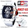 RM27-05 Flying Tourbillon Rafael Nadal White Carbon Automatic Mens Watch RMF Best Edition Black Skeleton Dial Lightweigh