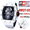 RM27-02 Real Tourbillon Hand Winding Mens Watch Best Edition RMF White Carbon Skeleton Dial White Nylon CHS