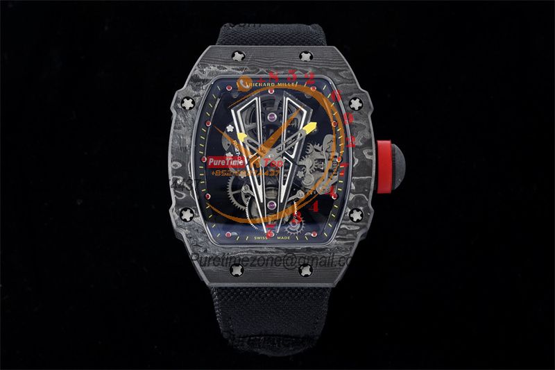 RM27-04 Rafael Nadal A23J Automatic Mens Watch RMF Best Edition Black NTPT Carbon Tennis Racket Skeleton Dial Gray Nylon