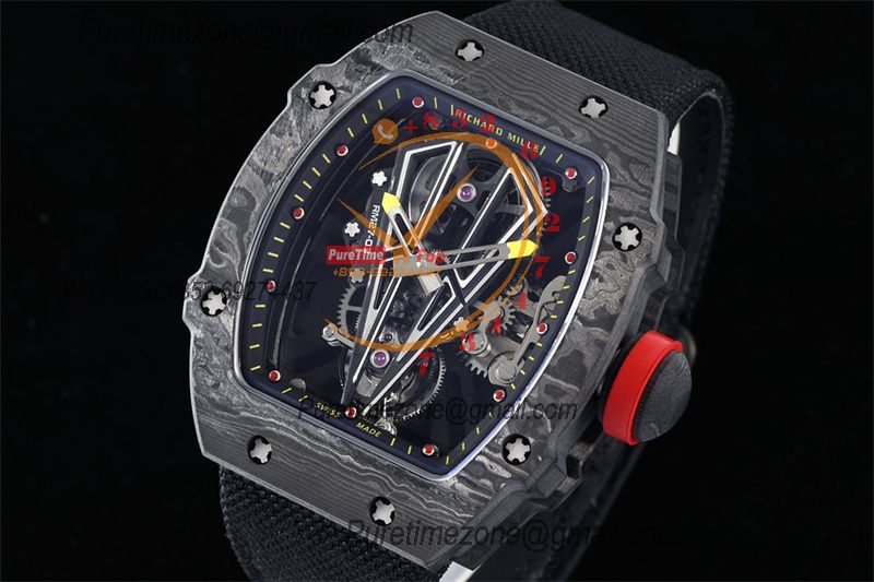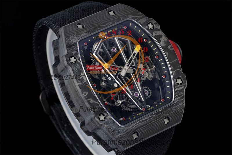 RM27-03 NTPT Real Tourbillon Hand Winding Mens Watch Best Edition RMF Black Carbon Skeleton Dial Nylon Strap CHS