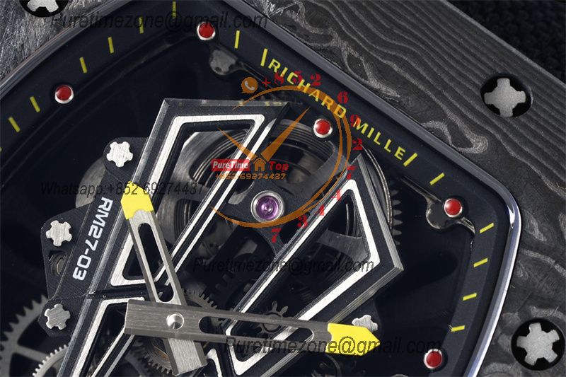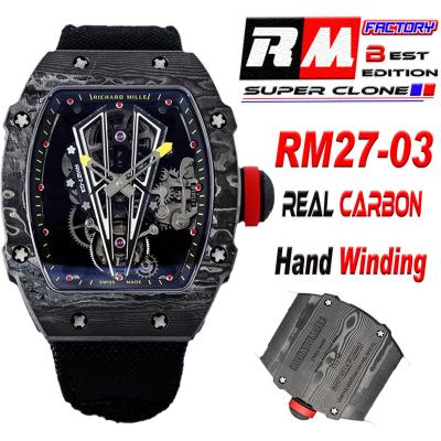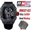 Home Richard Mille RM27-03 NTPT Real Tourbillon Hand Winding Mens Watch Best Edition RMF Black Carbon Skeleton Dial Nylon Strap CHS