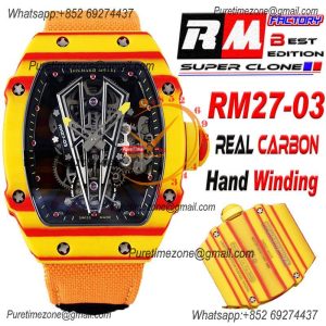 RM27-03 NTPT Real Tourbillon Hand Winding Mens Watch Best Edition RMF Yellow Carbon Skeleton Dial Black Rubber CHS $2,550.00 $1,700.00