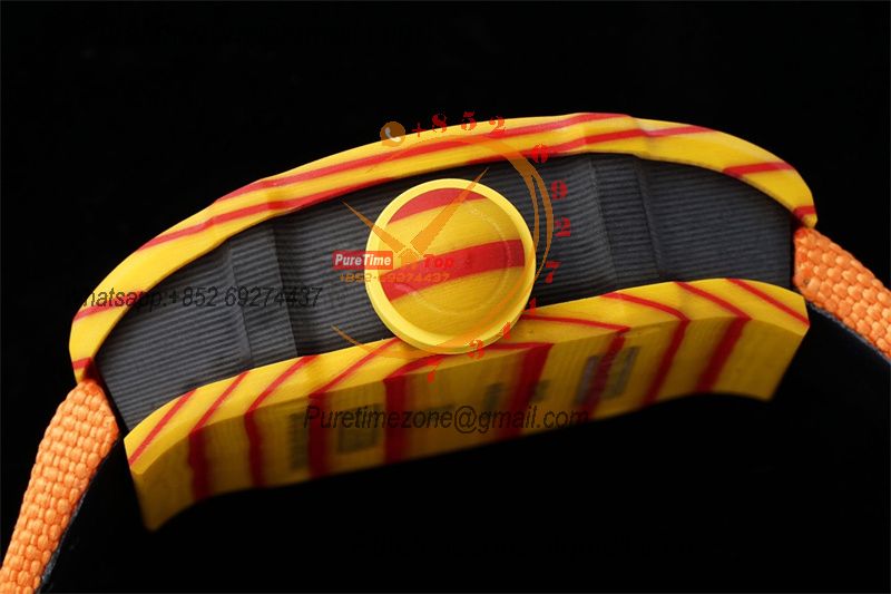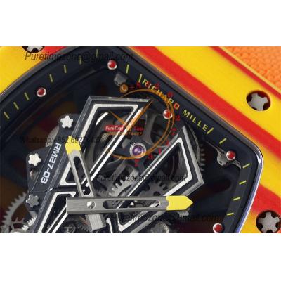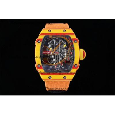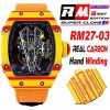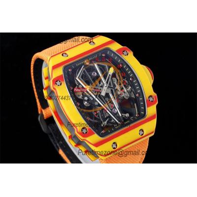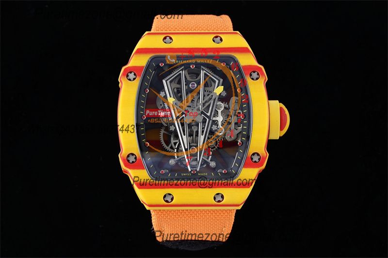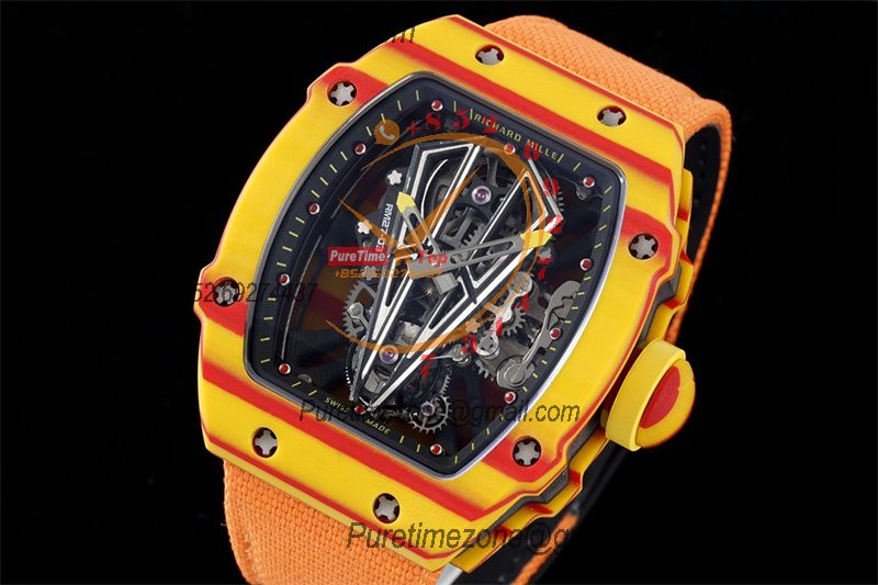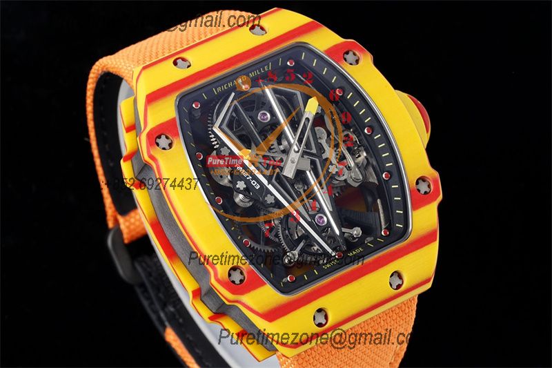 RM27-03 NTPT Real Tourbillon Hand Winding Mens Watch Best Edition RMF Yellow Carbon Skeleton Dial Nylon Strap CHS
