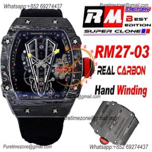 RM27-03 NTPT Real Tourbillon Hand Winding Mens Watch Best Edition RMF Black Carbon Skeleton Dial Nylon Strap CHS $2,550.00 $1,700.00