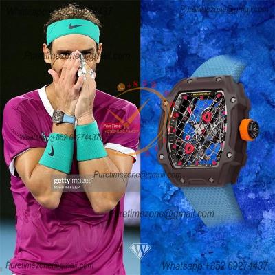 RM27-04 Rafael Nadal A23J Automatic Mens Watch RMF Best Edition Black NTPT Carbon Tennis Racket Skeleton Dial Blue Nylon