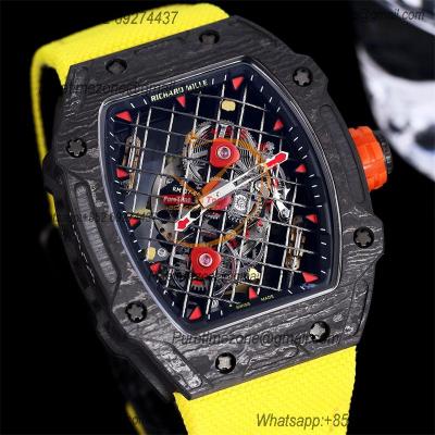 RM27-04 Rafael Nadal A23J Automatic Mens Watch RMF Best Edition Black NTPT Carbon Tennis Racket Skeleton Dial Yellow Nyl