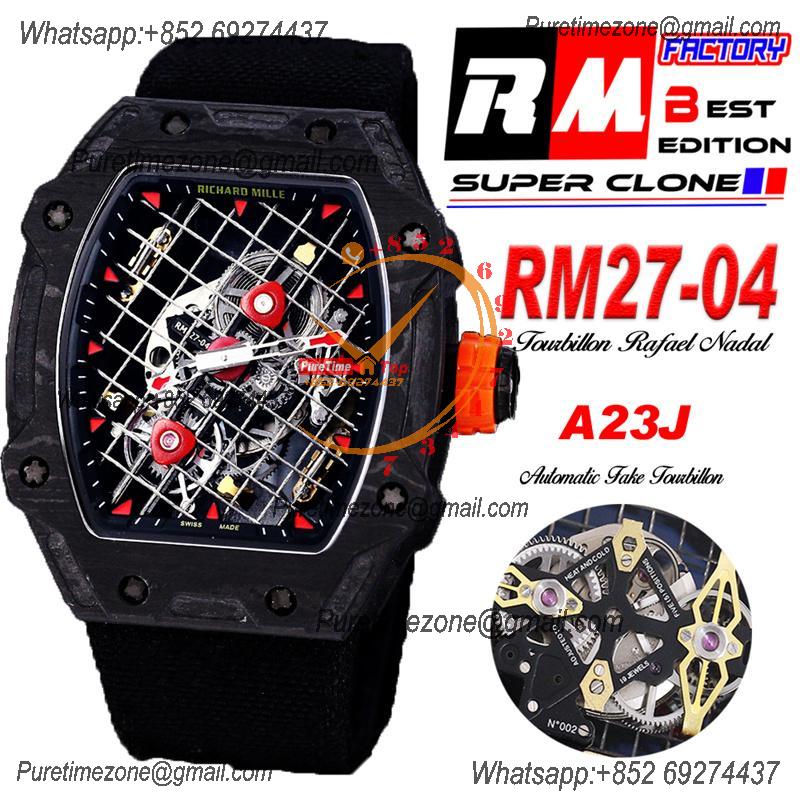 Home Richard Mille RM27-04 Rafael Nadal A23J Automatic Mens Watch RMF Best Edition Black NTPT Carbon Tennis Racket Skeleton Dial Nylon CHS