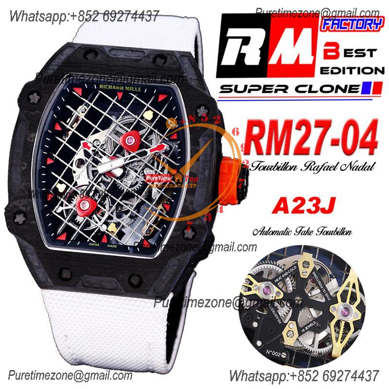 RM27-05 Flying Tourbillon Rafael Nadal White Carbon Automatic Mens Watch RMF Best Edition Black Skeleton Dial Lightweigh