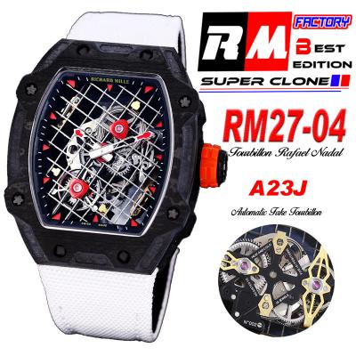 RM27-04 Rafael Nadal A23J Automatic Mens Watch RMF Best Edition Black NTPT Carbon Tennis Racket Skeleton Dial Nylon CHS