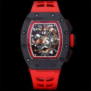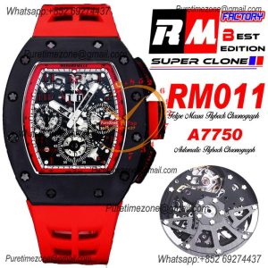 RM011 Felipe Massa A7750 Automatic Chronograph Mens Watch RMF Best Edition SS Black Dial Red Rubber Strap CHS
