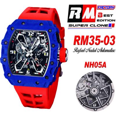 RM35-03 NH05A Autoamtic Mens Watch RMF Blue Carbon Skeleton Dial Red Rubber Strap CHS