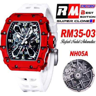 Home Richard Mille RM35-03 NH05A Autoamtic Mens Watch RMF Red Carbon Skeleton Dial White Rubber Strap CHS