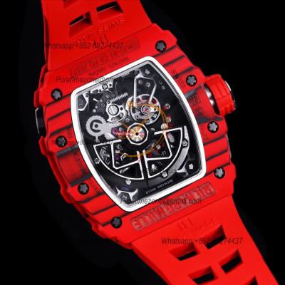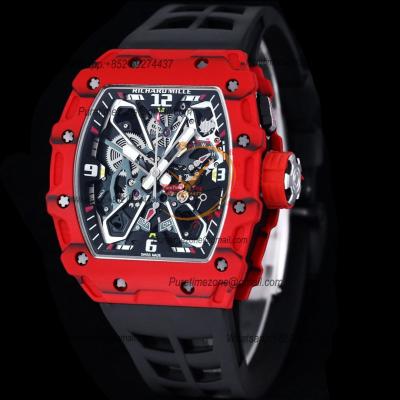 RM35-03 NH05A Autoamtic Mens Watch RMF Red Carbon Skeleton Dial White Rubber Strap CHS