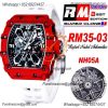 RM35-03 NH05A Autoamtic Mens Watch RMF Red Carbon Skeleton Dial White Rubber Strap CHS