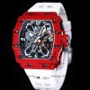 Home Richard Mille RM35-03 NH05A Autoamtic Mens Watch RMF Red Carbon Skeleton Dial White Rubber Strap CHS