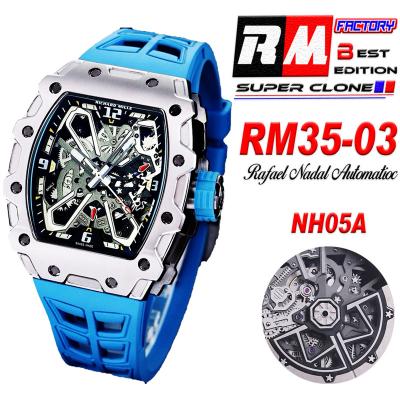 RM35-03 NH05A Autoamtic Mens Watch RMF Steel Case Skeleton Dial Blue Rubber Strap CHS