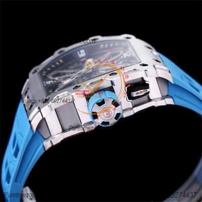 RM12-01 José Balvin Real Tourbillon Hand Winding Mens Watch RMF Best Edition Blue Transparent Composite Material Rubber