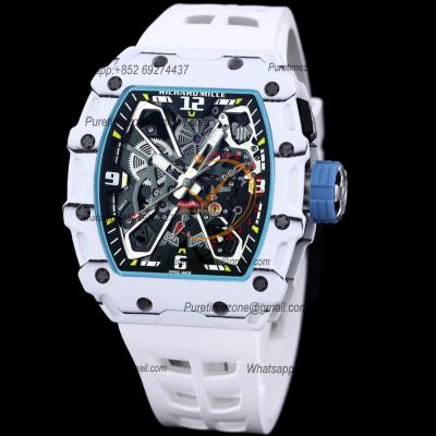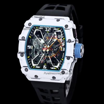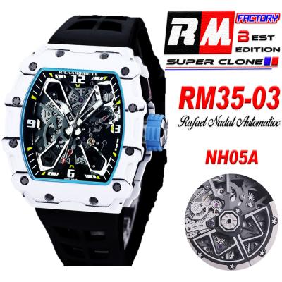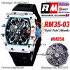 Home Richard Mille RM35-03 NH05A Autoamtic Mens Watch RMF White Carbon Skeleton Dial Black Rubber Strap CHS