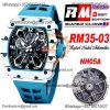 RM35-03 NH05A Autoamtic Mens Watch RMF White Carbon Skeleton Dial Blue Rubber Strap CHS