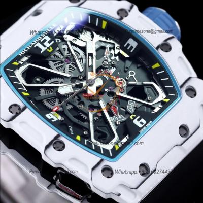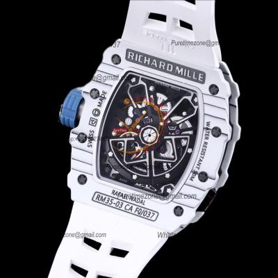 Home Richard Mille RM35-03 NH05A Autoamtic Mens Watch RMF White Carbon Skeleton Dial Blue Rubber Strap CHS